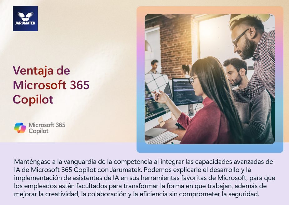 Como CSP de Microsoft, en Jarumatek ofrecemos asesoría personalizada para implementar Microsoft 365 Copilot de manera efectiva, asegurando que tu empresa aproveche al máximo sus beneficios.