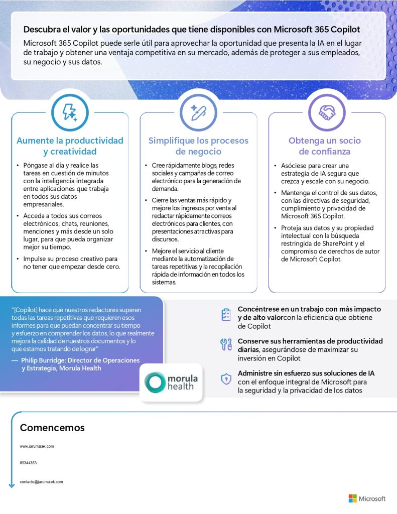Además, como CSP de Microsoft, en Jarumatek ofrecemos asesoría personalizada para implementar Copilot de manera efectiva, adaptándolo a las necesidades específicas de cada organización.